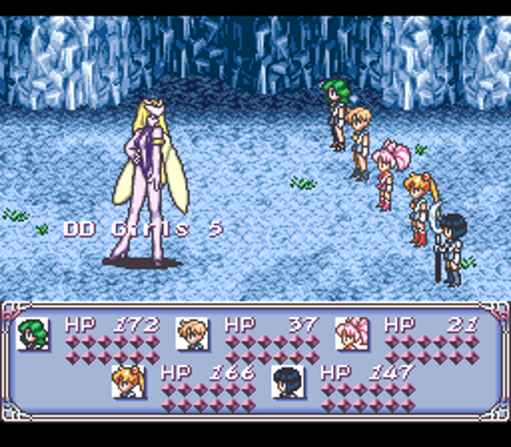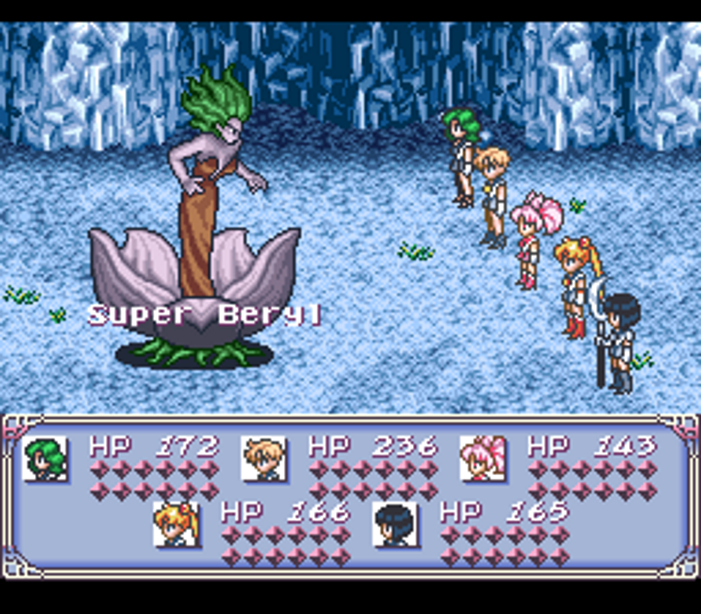 Of course, this second fight is actually unwinnable. Her defence is almost infinite and she kills you party in a couple of hits. The whole things is set up just to draw out the scene a bit more, build up the tension and pathos before Sailor Moon and Chibi-Moon combine Ginzuishous to weaken her enough to murderville.