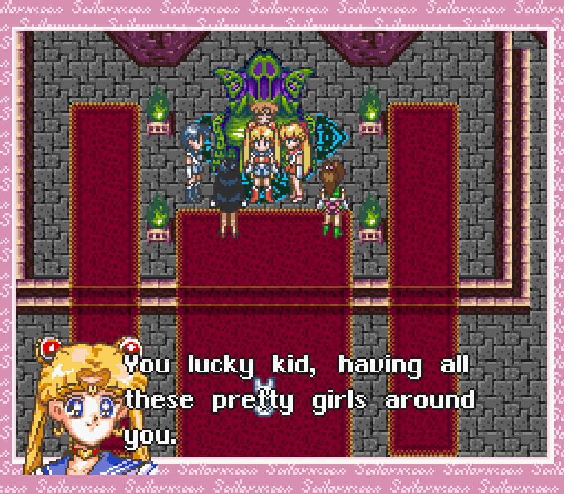 The Outer Senshi, with Chibi-Moon as the lead, has a few boss battles of their own. Now’s the time for some serious training, because damn if the enemies around here aren’t tough as hell. Good thing I stocked up on items before Chapter 5 because there’s nowhere to buy from here.