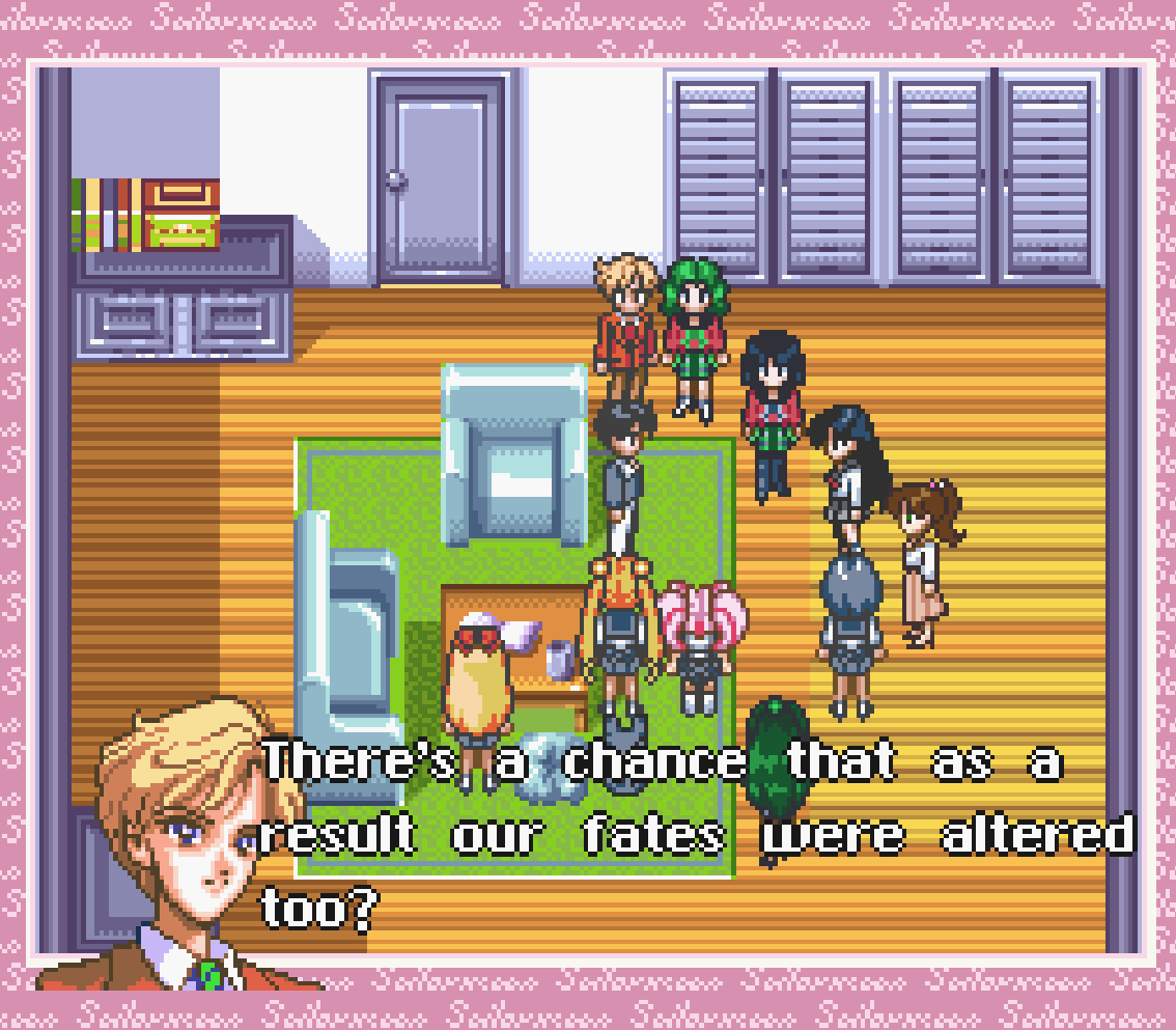 Well enough of Shingo, Mamoru is back to health! Well, mostly. That Barazuishou that Dimande dropped as he died really did the trick or whatever. As far as McGuffins go, that lasted 3/4 of the goddamn game and really felt pointless. Either way, this is a pretty cool pow-wow. I have enjoyed every single one of these so far, the Senshi talking together, trying to figure out their next move, interpreting Hell Destiny’s behaviour. It’s fun, it’s interesting, it adds agency to these characters.