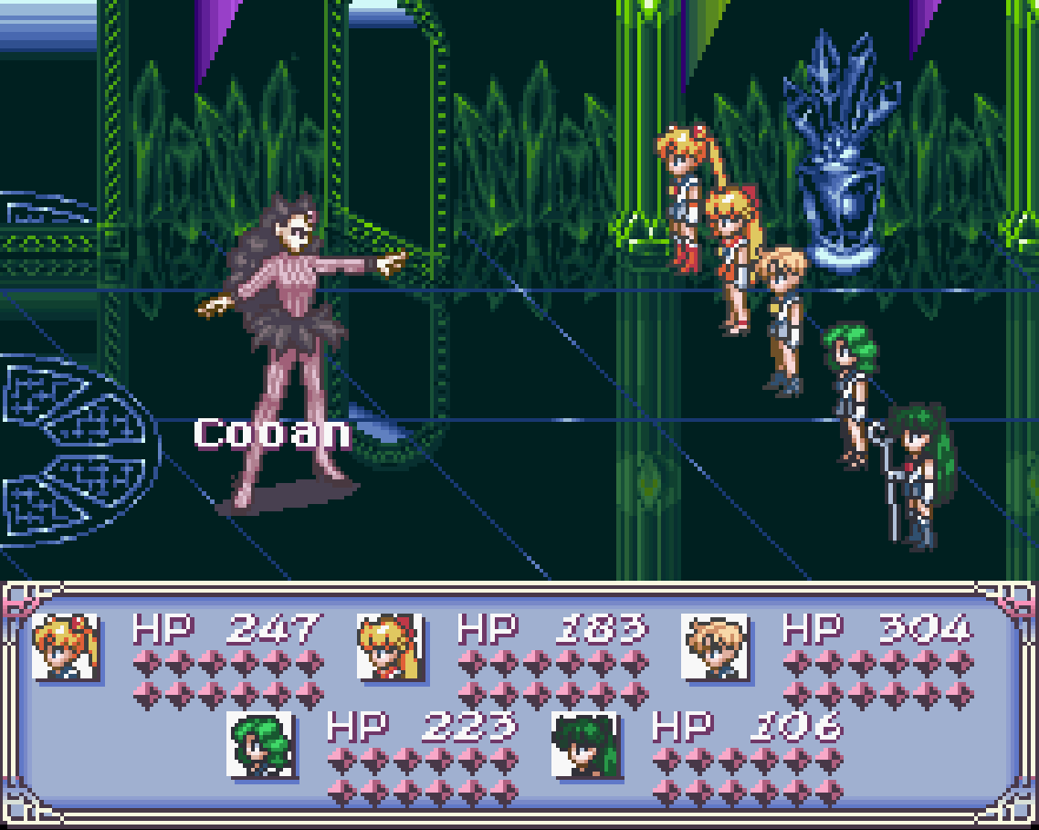 As much as I dig the compositions of the music in Sailor Moon: Another Story, the sound mixing is dreadful. When I consider that the hardware producing the square-shaped waves eminated from this game could also produce the subtle, haunting, beautiful soundtrack of Final Fantasy VI.