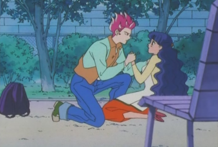Ok, so after creeping out both Ikuko and Chibi-Usa, the next step in his seduction is to… faint over the lemons. In a round about way, this causes Chibi-Usa to go and run to buy Hari-Hari pickles (I googled it – looks gross), thus leaving Hawks-Eye alone with Ikuko… yeah this is starting to make me deeply uncomfortable, in that “you leave a man alone with a women in a park and she’s assaulted” kind of way…