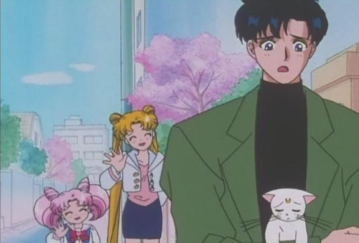 Mamoru leaves Usagi and Chibi-Usa with maths problems, threatening to not come by anymore if they fail to complete them. My my my. The hubris on this man, eh? Your presence is that precious that you can hold it over women, eh? EH? Either way, he leaves with Artemis, which seems fitting since there’s something rather similar about the both of them… some condescending attitude perhaps.