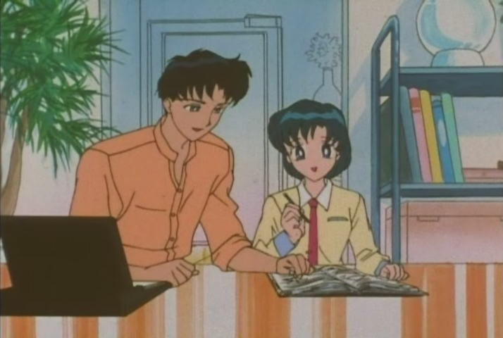 We open to quadratic functions. What a way to start an episode. I found quadratic equations difficult enough as a student without seeing Kanji shoved in there as well, so this textbook Mamoru is holding may as well be arcane mystic knowledge found in the Dead Sea Scrolls for all I know. What’s clear is that Ami and Mamoru are having way too good a time together. Ami even makes a comment about having to understand Einstein’s relativity in space to solve the equation (??? what ???)