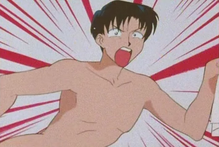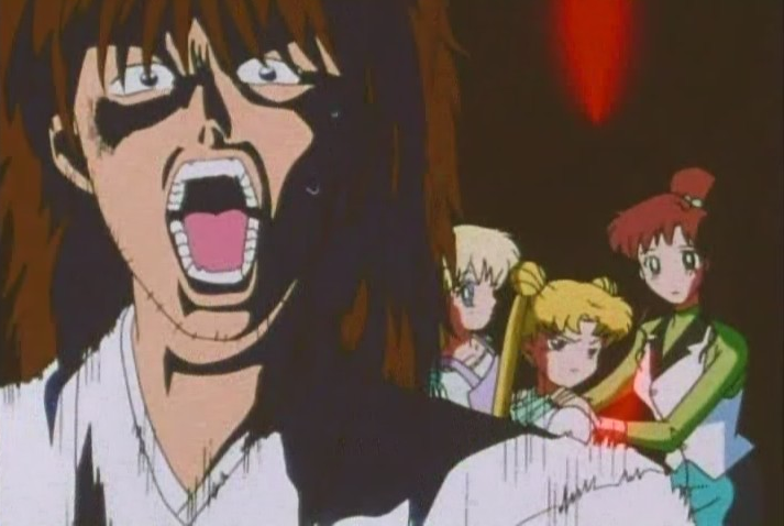 He continues to hit on Rei but she’s so focussed on trying to whack Usagi (who isn’t even there, so Rei looks insane) that he becomes enraged like all straight white entitled men (AMIRIGHT?) and just attacks rather than be ignored any longer.