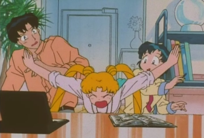 I love how Mamoru, working on his report, looks up with a “Usako is calling me…!” but Diana tells him to ignore it and focus on his report. And he’s like “ok.” Best use of a Tuxedo Kamen appearance ever, by not having one. That’s an extra point on the episode score right there.