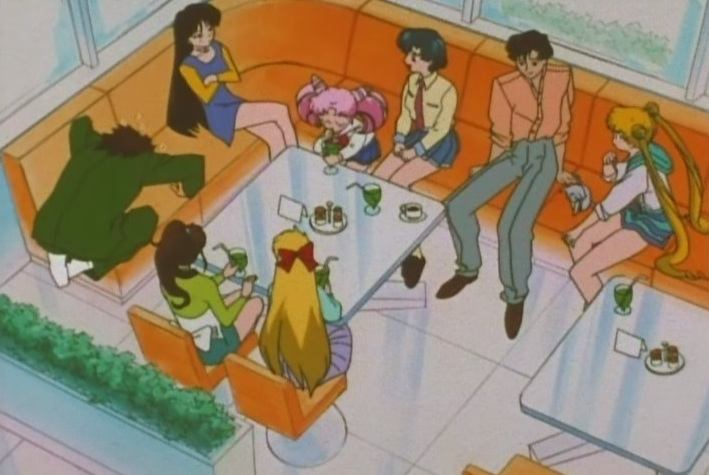 Naturally, of course, all Diana saw was smoke from someone cooking fish. I sorta like how all the girls look like they’re being reprimanded here… but then I remember it’s Mamoru being a condescending dipshit SO all I am is enraged.